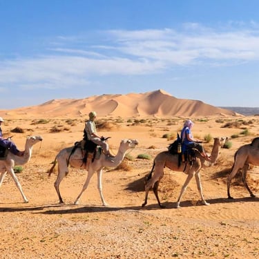 After a short stop in town, stroll through the souk for some shopping, departure by 4X4 on the Transsaharienne to the north, lunch on the way. After the Arak Gorge, we arrive at Erg Belguerdane, where we meet our camel drivers. Set up your bivouac, and allow 5 to 6 hours for this day's 4X4 drive.