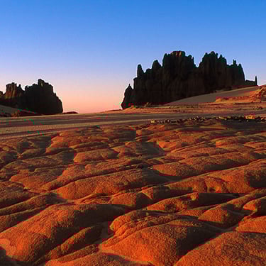 Walk along the dunes, at the pace of the caravan, before heading into the Tassili de Tim-Meskis to enjoy the morning light. Lunch at the well and in the afternoon, visit the rock paintings at In Ana, set up camp. End of camel trek. This day's trek takes around 4 to 5 hours.