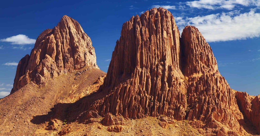 El macizo de Hoggar, en el Sáhara argelino, es una majestuosa maravilla natural, famosa por sus espectaculares paisajes, montañas escarpadas, fascinantes formaciones rocosas y vastas extensiones de desierto. Este desierto pedregoso ofrece a los visitantes una experiencia única, que combina la aventura al aire libre con la inmersión en una naturaleza virgen. Como destino turístico, el Hoggar ofrece una experiencia inolvidable a los amantes del senderismo, la escalada, la acampada y la observación de estrellas. Las variadas rutas de senderismo permiten a los visitantes explorar profundos cañones, verdes valles, oasis ocultos y aldeas bereberes tradicionales. Las épicas puestas de sol y las deslumbrantes noches estrelladas son momentos inolvidables que se pueden vivir en este impresionante paisaje. Los amantes de la cultura también pueden descubrir la rica historia de la región visitando yacimientos arqueológicos prehistóricos, pinturas rupestres y restos de antiguas civilizaciones que antaño habitaron estas tierras. Para los que buscan aventuras y descubrimientos, el macizo del Hoggar ofrece una experiencia auténtica y gratificante, lejos del ajetreo y el bullicio de la vida urbana, en un entorno natural impresionante y virgen. Prepárese para dejarse sorprender por la belleza en bruto y la diversidad de esta joya oculta del Sáhara. Reserve ya su viaje al Hoggar para vivir una aventura inolvidable en el corazón del desierto argelino.