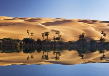 Контраст между двумя средами: эрг и пальмовая роща.