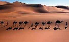 迪德尔是我们骆驼跋涉的起点,跋涉将持续数天。每天,我们将步行 2 到 3 个小时。有些时候,根据食物和水的供应情况,以及当地美景所引起的兴趣,我们只在上午行走。如果进展顺利,天气允许,我们会在一个比另一个更吸引人的地方住上两个晚上。偶尔,我们也会在向导的陪同下进行短途徒步旅行,去探寻大篷车行程中不一定有的景点。为了遵守计划,我们的目标始终是在日落前抵达营地。 这将使我们能够放松身心,在闲暇时探索这里的风景和壮丽的环境。白天,没有车辆跟随大篷车,大家可以自由骑行、步行,甚至在细如丝的沙地上慢跑。